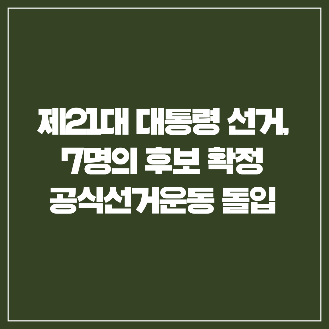 2027년 제21대 대통령 선거가 본격적인 레이스에 돌입했습니다. 중앙선거관리위원회에 따르면, 지난 5월 11일을 기점으로 대통령 후보자 등록이 마감되었으며, 총 7명의 후보가 이번 대선에 출마를 확정지었습니다. 이번 선거는 대통령 탄핵으로 인한 조기 대선이라는 점에서 정치권과 국민 모두에게 큰 관심을 받고 있으며, 향후 6월 2일까지 진행되는 공식 선거운동 기간 동안 각 후보는 유권자들의 마음을 사로잡기 위한 총력전을 펼칠 예정입니다.